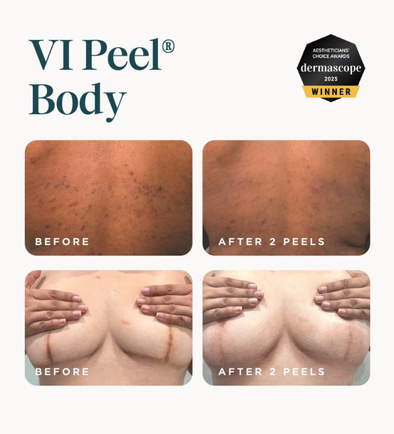 The first and ONLY professional-grade body peel specifically formulated to address concerns below the clavicle; suitable for all body parts and ideal for skin of color
