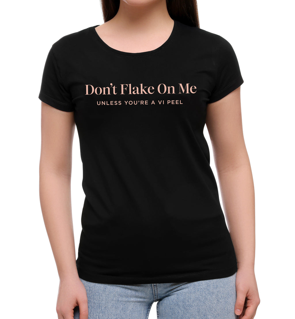 Enjoy the comfort of our cotton VI Peel "Don’t Flake on Me, Unless You’re a VI Peel" t-shirt, available in Women's & Men's sizes Extra Small to XX-Large. Effortless upkeep – Machine wash and tumble dry.